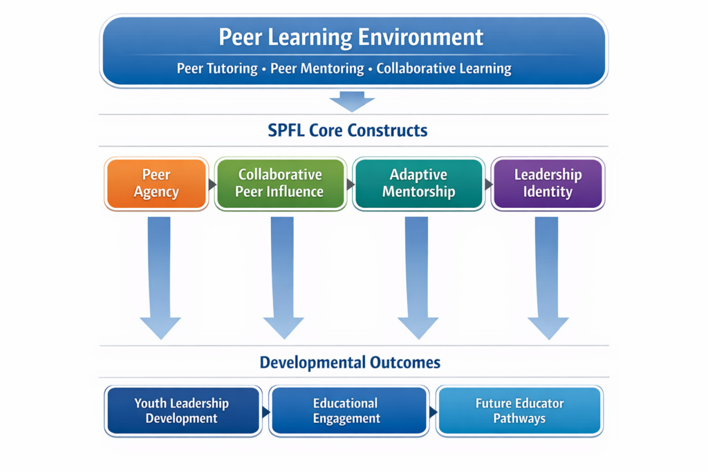 The SPFL framework conceptualizes youth leadership development as an emergent process shaped by structured peer learning environments. Within these environments, several interconnected constructs help explain how students develop leadership capacities while supporting the learning of others.